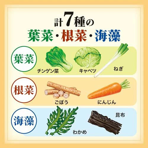 This hearty soup contains seven types of leafy vegetables, root vegetables, and seaweed, including bok choy, burdock, and wakame seaweed, all in one bowl.