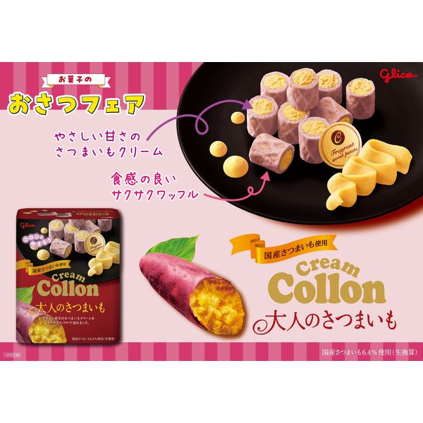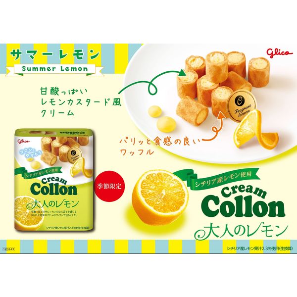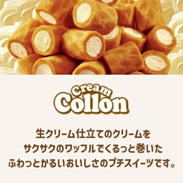 Cream Colon is a long-selling baked confectionery sold by Ezaki Glico. It is a bite-sized sweet made of crispy waffle dough wrapped around fluffy cream, and comes in a variety of flavors.