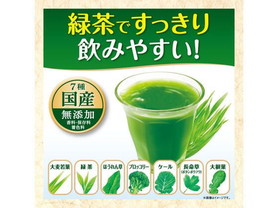 Made with five domestic ingredients: young barley leaves, kale, green tea, spinach, domestic honey, and domestic soy milk, this delicious green juice drink simply requires mixing with water.