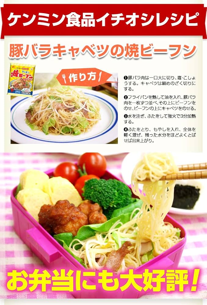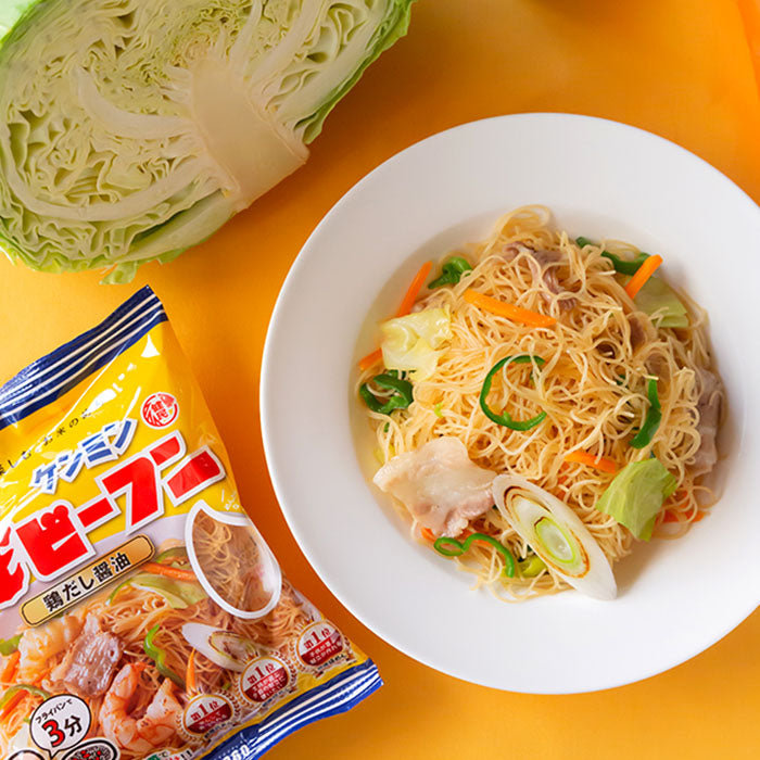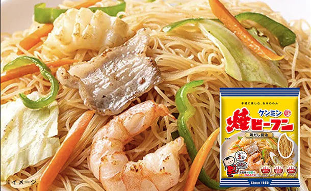 Kenmin Yaki-Bifun is a classic Japanese fried rice vermicelli that can be easily prepared at home. Made with rice noodles and savory seasonings, it delivers a light yet flavorful dish. Just stir-fry with your favorite meat and vegetables for a quick and satisfying meal. 65g single serving pack.