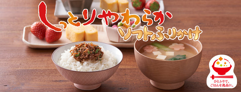 "Soft Furikake" is carefully cooked in a large pot to create a "moist and soft" texture, recreating the deliciousness of homemade side dishes, prepared dishes, and tsukudani (foods boiled in soy sauce).