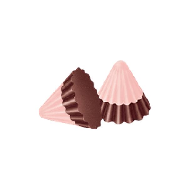 - Cute cone-shaped chocolates with strawberry and milk chocolate layers