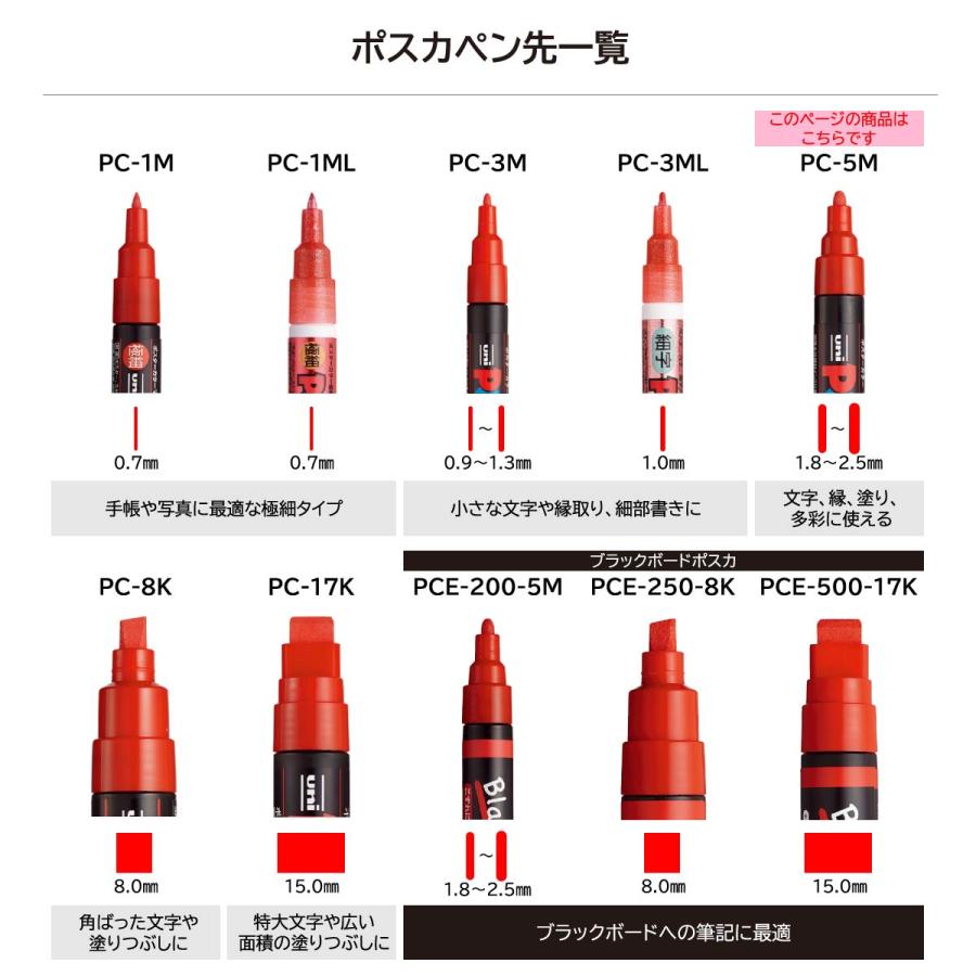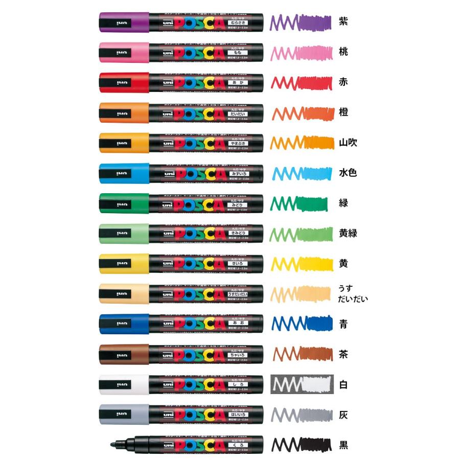 Mitsubishi Pencil Posca Medium Round Tip Marker 15-Color Set (PC5MC)