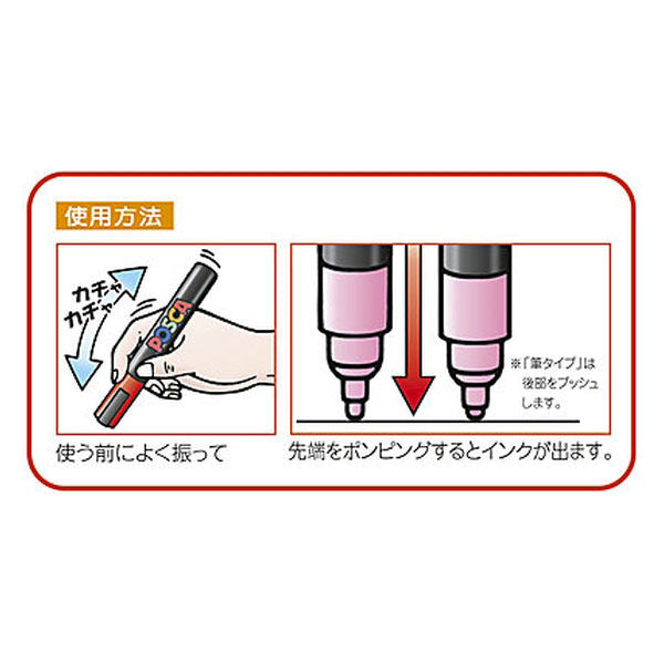 The opaque ink produces vibrant colors even on black or dark colors, and can be overwritten. A wide variety of nib thicknesses and ink types are available, making it suitable for a wide range of uses.