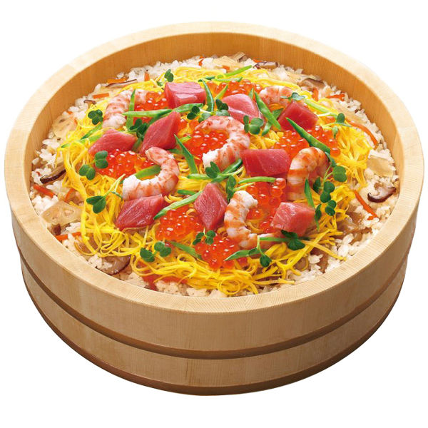 This chirashi sushi mix can be easily made by simply mixing it with warm rice.