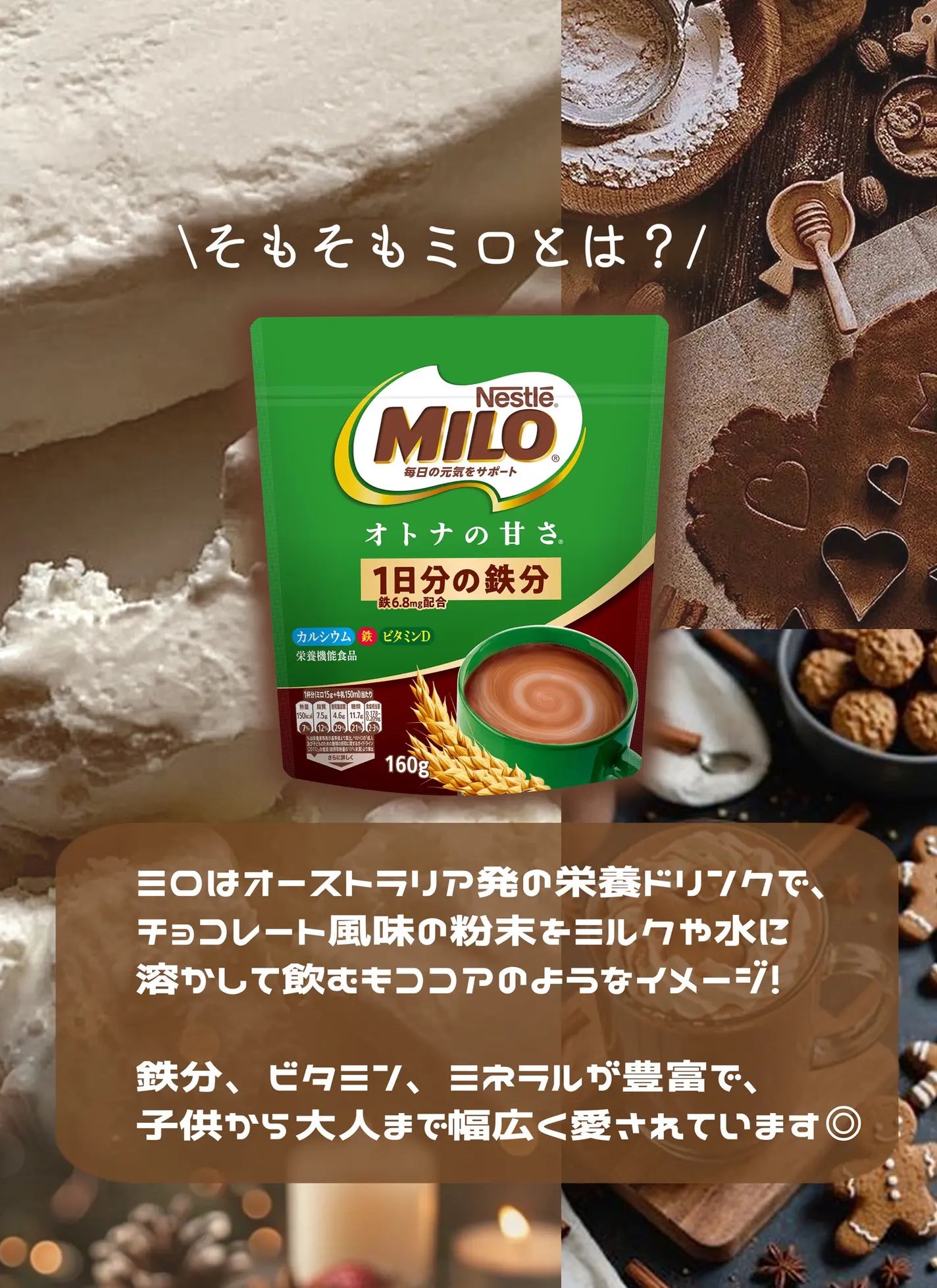 Nestlé Milo “Otona no Amasa” (Adult Sweetness) is a cocoa malt beverage powder designed for adults with a more balanced sweetness.