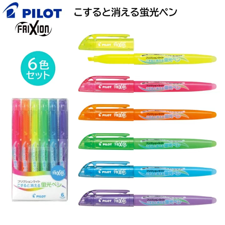 Erasable highlighter set from Pilot. The FriXion Light series uses special erasable ink, allowing you to highlight and erase cleanly with friction heat.