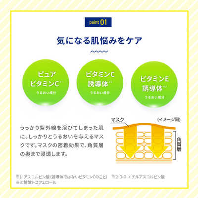 When your busy daily routine is making you worry about your skin's condition, or after sun exposure, moisturize your skin. This thick, tight-fitting mask, formulated with vitamin C and vitamin E derivatives, envelops your skin. The generous amount of serum ingredients penetrates deep into the skin, providing moisture without a sticky feeling.