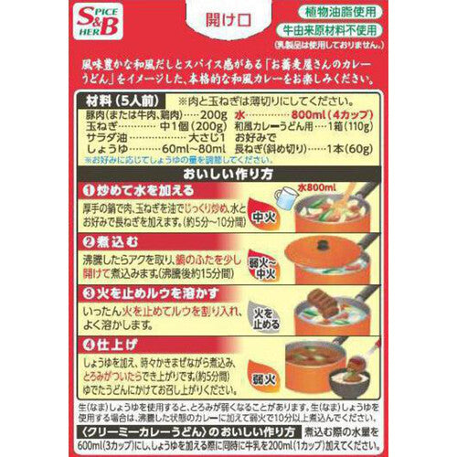 S&B Japanese Curry Roux for Udon (Medium Hot) 5 Servings – 110g