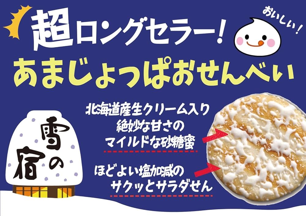 Soft, melt-in-your-mouth rice crackers are seasoned with a refreshing salty flavor and topped with mildly sweet milk cream made with fresh cream from Hokkaido for a delicious finish.
